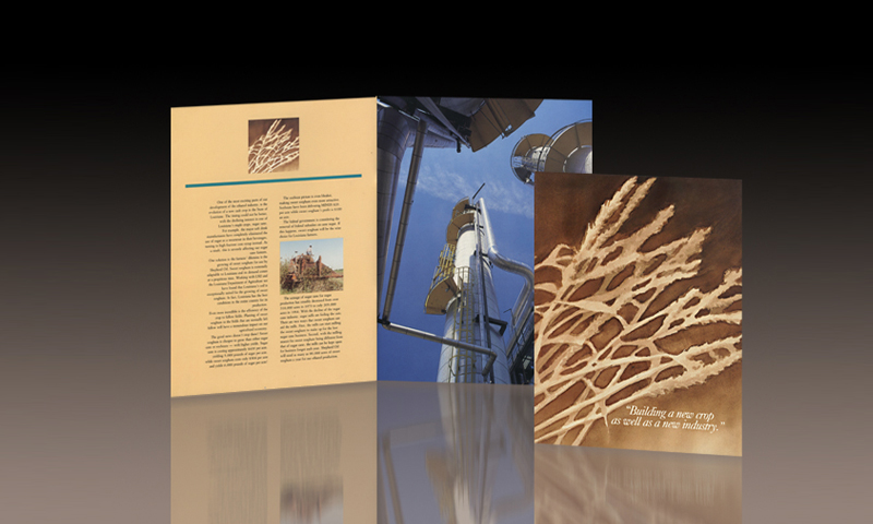 Ethanol was being made by this company from a wheat like crop called “sorghum”. It was not pretty. So I did a watercolor rendition of it and used it throughout the brochure. In this piece I also did all the actual photography.